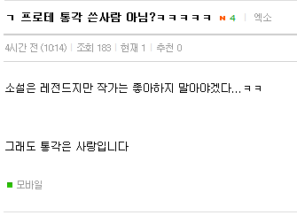 작가는 싫지만 팬픽은 봐야겠다.인티