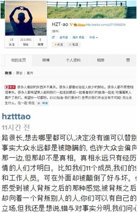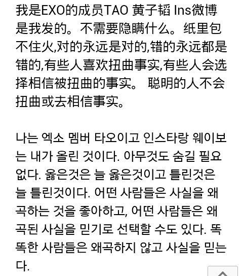 "나는 엑소 멤버 타오이고 인스타랑 웨이보는 내가 올린 것이다"