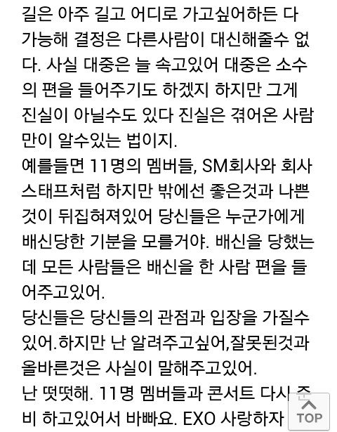 팬들의 유언비어를 개 헛소리 믿지말고 엑소를 믿으라고ㅡㅡ