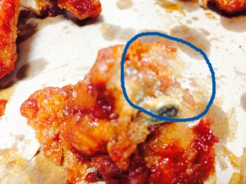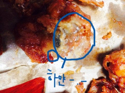 낮이라서 40분 걸린다길래 이해하고 기다렸고 40분후에 치킨 도착해서 맛있게 먹는데 어머니가 닭이 너무 딱딱하다고 바싹 비틀어졌다고 이거 좀 이상하다고 하는겁니다. 저도 원래 ㄱ*치킨 자주 시켜먹는데 원래 여기치킨이 그러니까 그냥 그러려니했는데 이게 뭡니까. 양념치킨 안 쪽에서 소금같은 하얀 결정체가 발견된 겁니다???!! 그런데 한 부분에서만 발견된게 아니라 여기저기 닭 부분마다 발견되는 겁니다. 무슨 양파까듯이 양념된 껍질 벗기면 소금같이 하얀 결정체가 보였습니다. 맛도 소금이고.