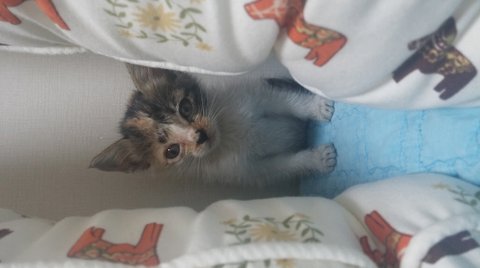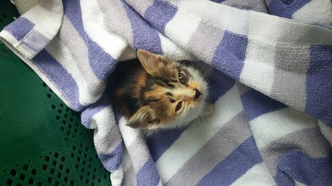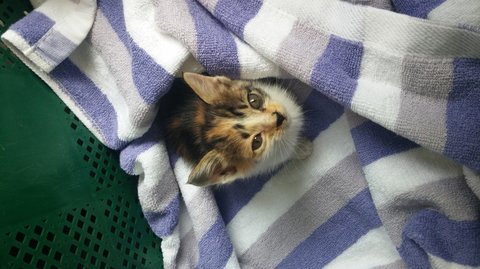 5월 15일 대전 충무체육관 근처 쓰레기더미에서 울고 있는 새끼 고양이를 발견하였어요