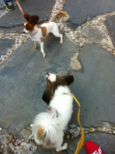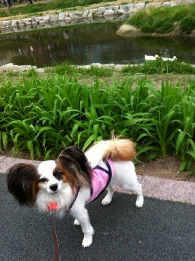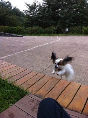 대부분의 빠삐용 성격이 그런지, 우리 삐용이가 그런지 다른 개들을 너무 무서워해요...