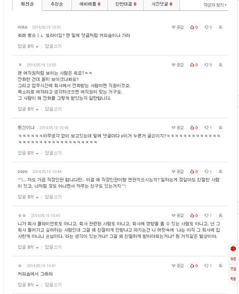 제가 회사생활이라는 판에 저렇게 글을 올렸는데 마치 그 회사의 여직원의 전화응대가