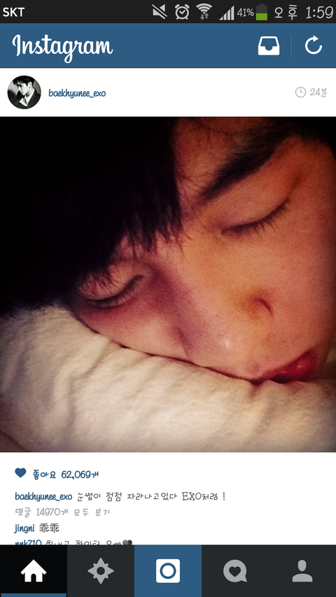 타어랑 모델 혜박 백현이 인스타 좋아요누름