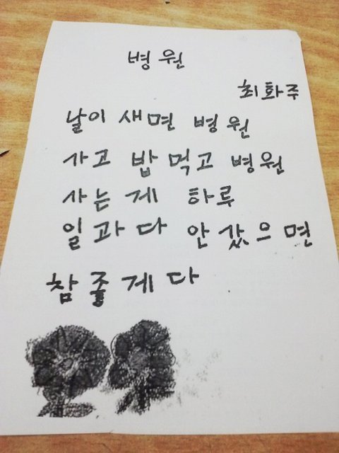 철없는 나이에 학교를 자퇴하고 방송통신고등학교를 다니고 있는데요.. 70대 60대 50대분들이랑 한반에서 공부하는데 보면서 느낀점은 대단하시다고 생각합니당! 지금도 늦지 않았다는걸 느끼게 해주시는 훌륭한 분들 입니당~! 할머니 시 내용이 마음에 박히는군요!