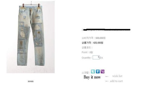 60만원짜리 아니 할인해서 42만원짜리 청바지