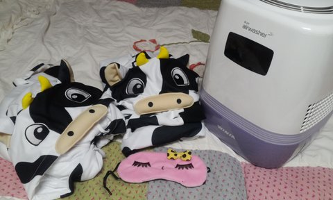 아...ㅎㅎㅎ 제 친구들이... 아직 남자친구가 없는 친구들이 많거든요..집에와서 보니깐 으리를 지키라는 친구들은..귀여운 젖소 잠옷과 에어워셔랑 안대를 선물로 줬네요..