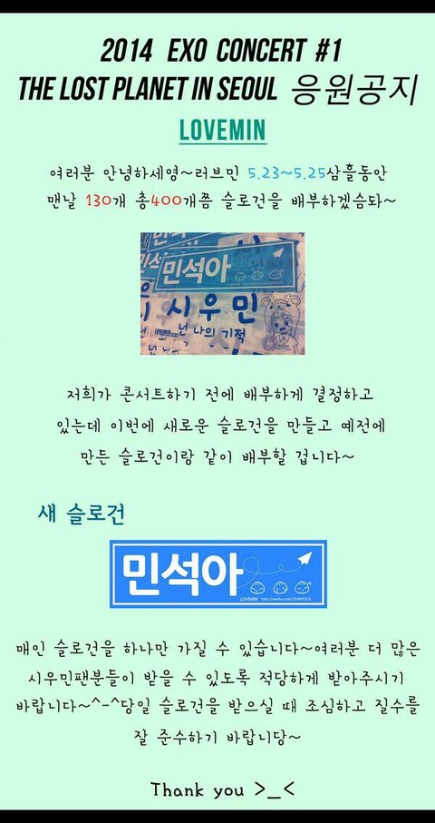 민석이 중국팬페 러브민 공지
