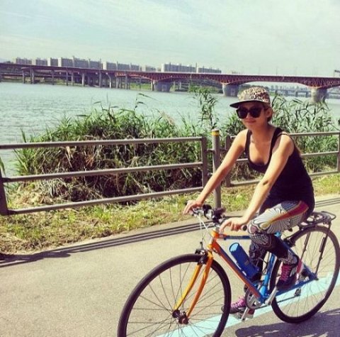 한강에서 자전거 타는 효연의 모습ㅋㅋ