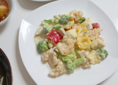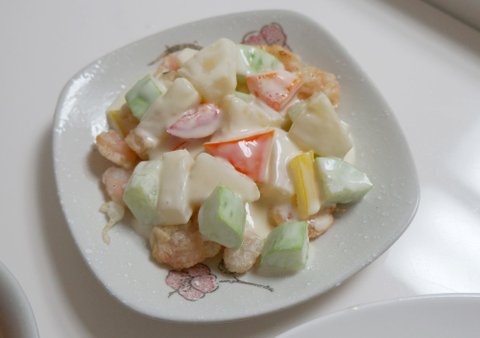 칵테일 새우 사서 튀긴 다음에 반은 크림새우로 만들었어요 ㅋㅋ