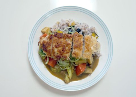 그래서 카레 위에 치킨까스 올려서 먹었어용 ㅋㅋ