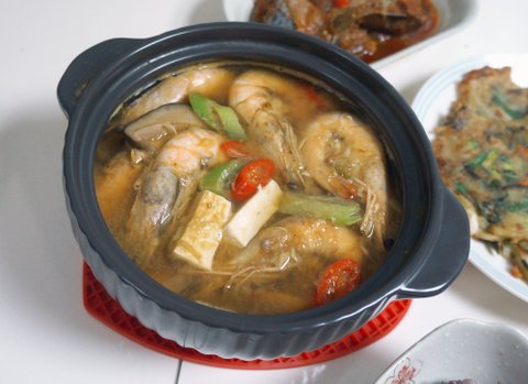안보이지만.. 전복이랑 새우를 넣은 해물된장찌개 ㅎㅎ
