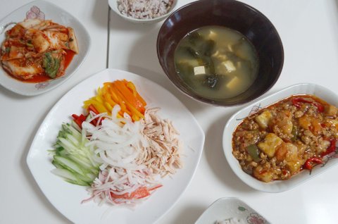 마파두부랑 닭가슴살냉채로 한상ㅎㅎ