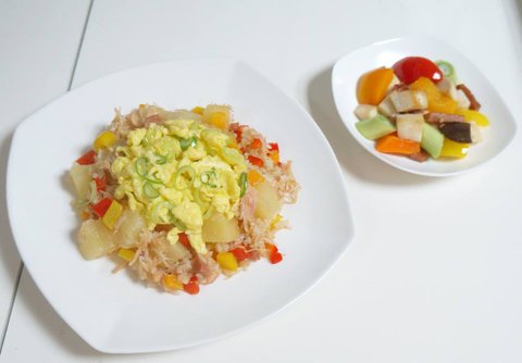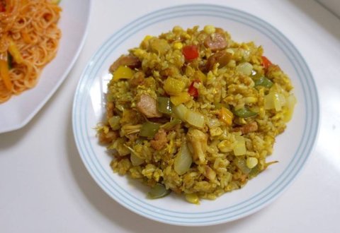 이건 닭가슴살 + 파인애플 + 야채듬뿍 넣은 카레 볶음밥!