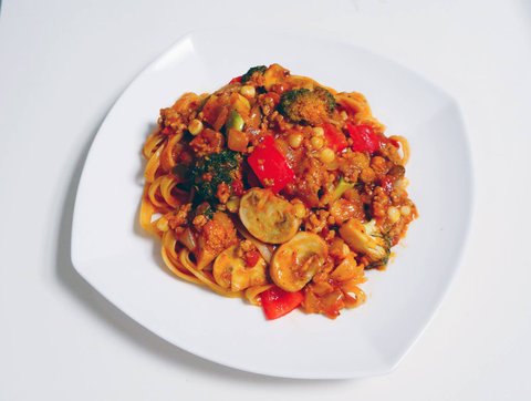 야채랑 갈은 고기 듬뿍 넣은 로제파스타 :)