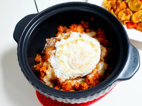 김치볶음밥에 치즈 뿌리고 계란 후라이로 마무리 ㅎㅎ