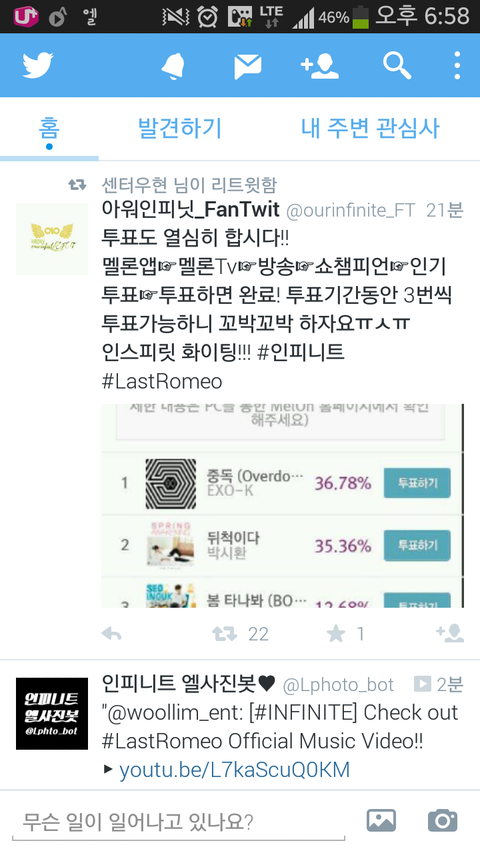 인슾여러분 ㅠ 투표좀 합시다ㅠ 스밍도 열심히 잘 돌리고 계시죠♥ 엑소팬톡에서 머라고 말해도 걍 내비두고 우리는 인피니트 열심히 응원하면 되요 네이트판에 엑팬이 훨씬 많아서 괜히 싸움나면 서로 기분상하고 별로잖아요 네트판에는 관종도 많고ㅇㅇ