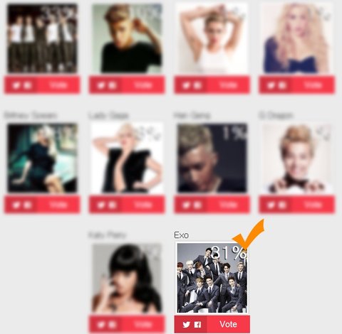 상단에 MC 백현과 수호의 모습 클릭하여 EXO에 투표