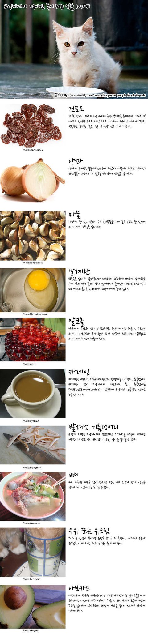 우리나라 길고양이들이 집앞이나 쓰레기장에버린 음식물쓰레기 파먹는데, 막상 독이되는물질글 보니까 너무 안타깝다ㅠㅠ... 수많은 길고양이들이 많이 아팠겠지ㅠ?기본적으로음식에 거의들어가는게 마늘,양판데