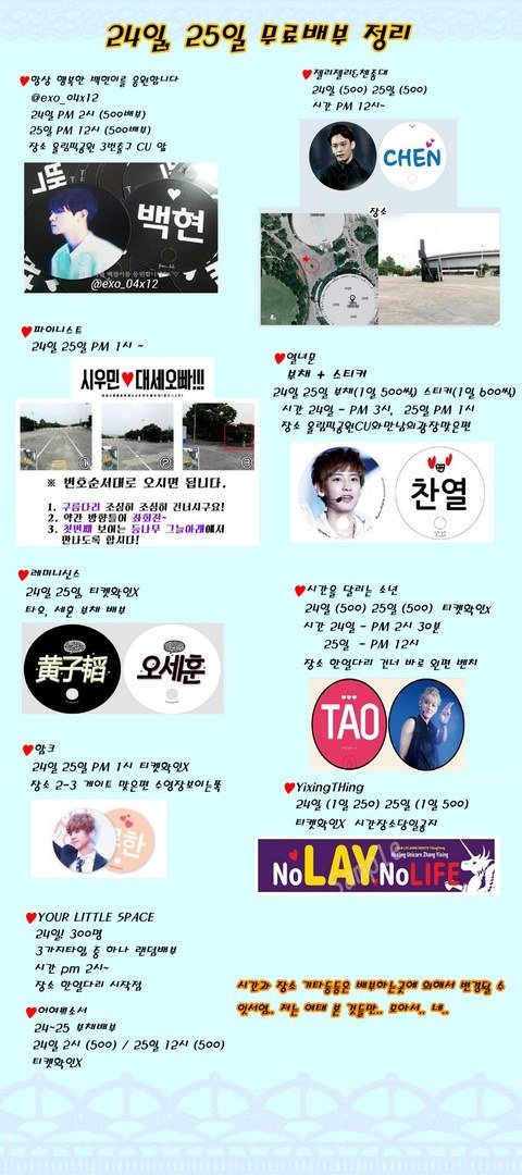 엑소팬들 부채 디오카이수호만 빼놓고 배부하네