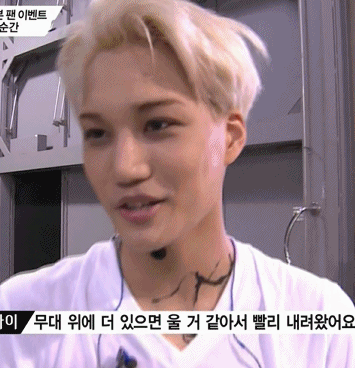 카이: 무대 위에 더 있으면 울 거 같아서 빨리 내려왔어요