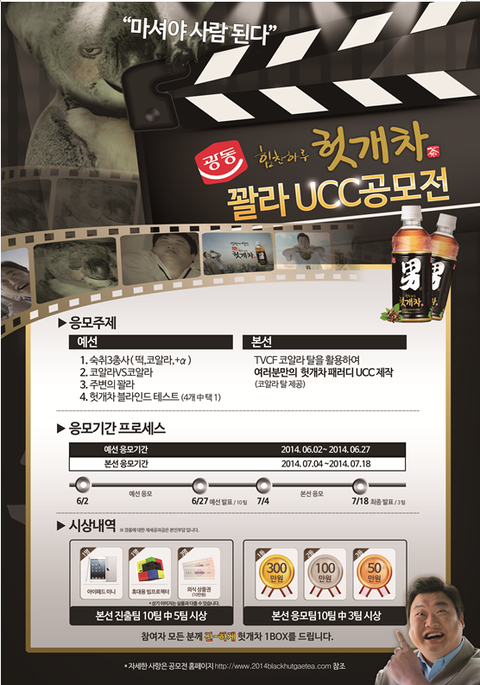 헛개차, 헛개차 UCC공모전, 꽐라, 코알라 UCC, 진한 헛개차, 마셔야 사람된다, 힘찬하루 헛개차, 대학생 UCC공모전, 헛개차 패러디 영상