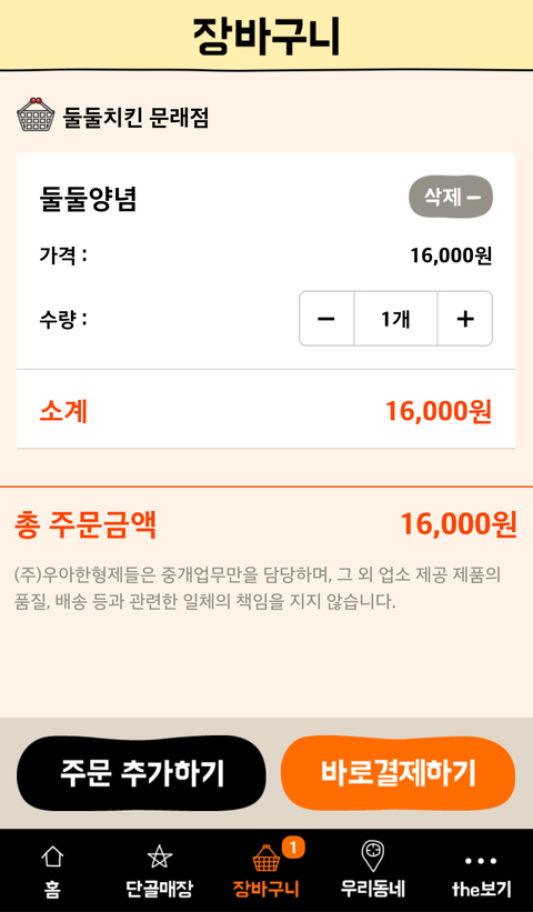 이렇게 배달음식을 주문할 가게와 메뉴까지 정했으면,