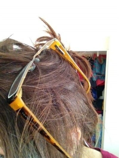 5. 안경둘 곳이 없어 잠시 머리에 얹었더니 머리카락을 잡고 놔줄 생각을 않는다.