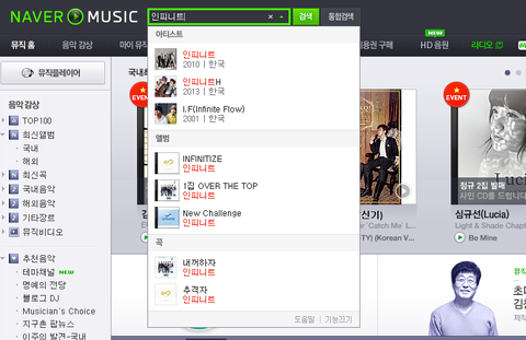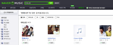 근데 네이버 뮤직에서 인피니트 쳐봐
