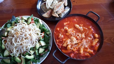 집에 나뒹고는 늙은 호박 쪄서 수제비 반죽 만들고