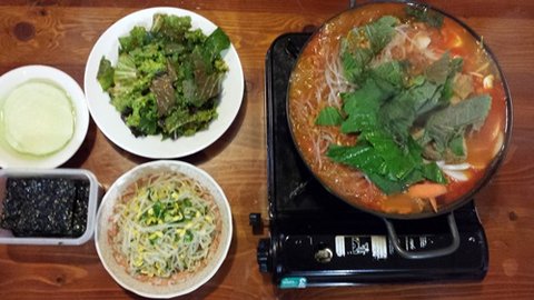 지인으로부터 얻은 집에서 기른 각종 쌈채소들 팍팍넣어서 신랑이랑 사이좋게
