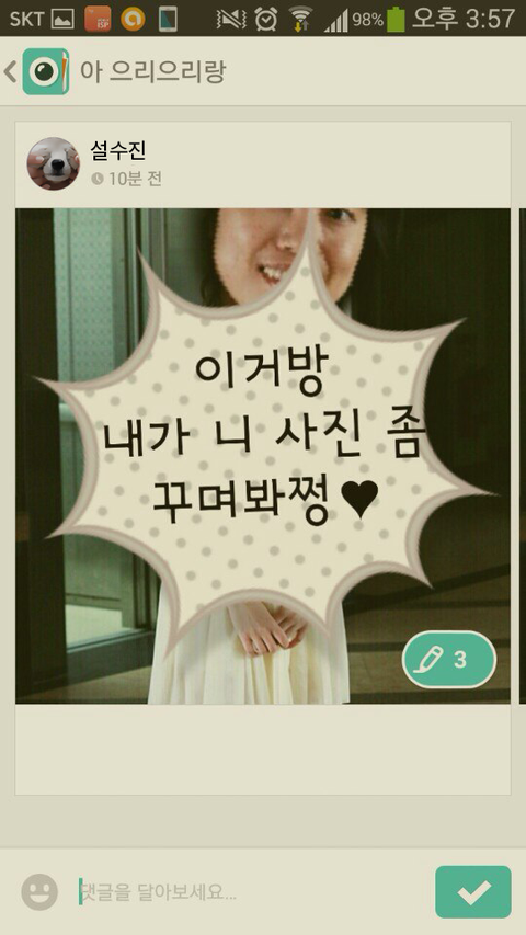 어제 저녁에 친구들이랑 사진으루 밤새 장난치다가