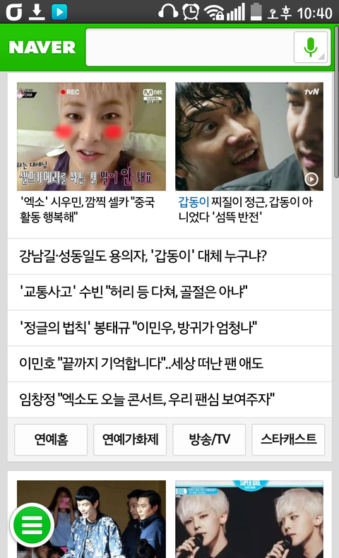 네이버 연예 메인에 시우민 있어 ㅋㅋ