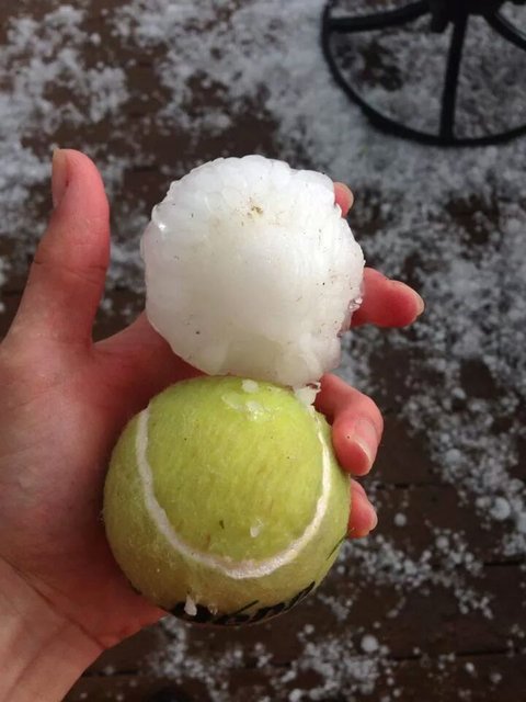하늘에서 내린 우박의 크기가 테니스 공만함 ..
