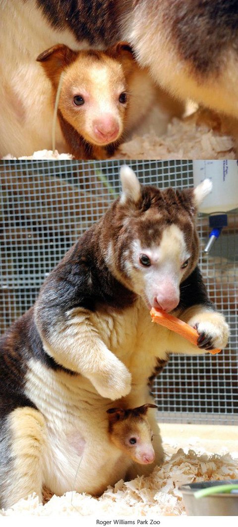 황갈색 눈에 두꺼운 털을 가진 나무 캥거루는 나무 위에서 살면서 나뭇잎과 이끼와 나무 껍질 등을 먹고 산다. 뉴기니의 열대 우림이 대표적인 서식지이며 몸길이는 60센티미터 전후이고 무게는 7킬로그램 전후다. 수줍은 성격의 나무캥거루는 현재 야생에 약 2천5백 마리가 남은 것으로 추정된다. 나무캥거루가 태어난 것은 로저 윌리엄스 파크 동물원에서 20년만의 경사이다.