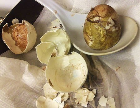 주로 노점상에서 팔리는 음식이며 껍질이 빨강에서 갈색사이가 될 때까지 익혀서 먹는다고 하네요.