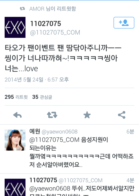 땀닦아준거 카이아니고 타온데 뭔소리들이야