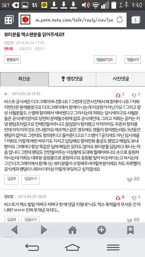 뷰티들 베플 올라가기전에 맨위에 댓글 이거 추천눌리고 너네도 반박댓글 써 http://m.pann.nate.com/talk/reply/view?pann_id=322710987&currMenu=category&stndDt=20140524