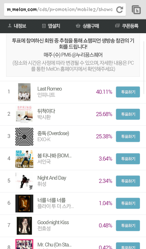 http://mcountdown.interest.me/vote/state.asp 엠카투표 2위