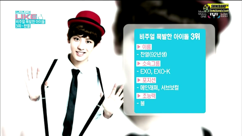 슈퍼아이돌차트쇼에 벌써 세번?넘게 나옴ㅋㅋ역시 찬열이♡