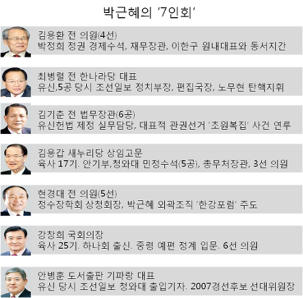 ‘7인회’가 정권을 주무르고 있다고 해도 과언이 아니다. 김기춘 실장은 요소에 자신의 동향 검사 후배들을 포진시켜 사실상 내각을 장악한 상태이고, 강창희 국회의장은 입법부의 분위기를 정권 쪽으로 유도해 나가는 역할을 하고 있다.