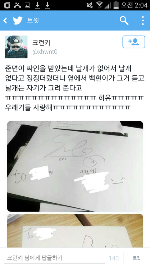 백현이랑 준면ㅇ이 싸인 대박ㅜㅜㅜ