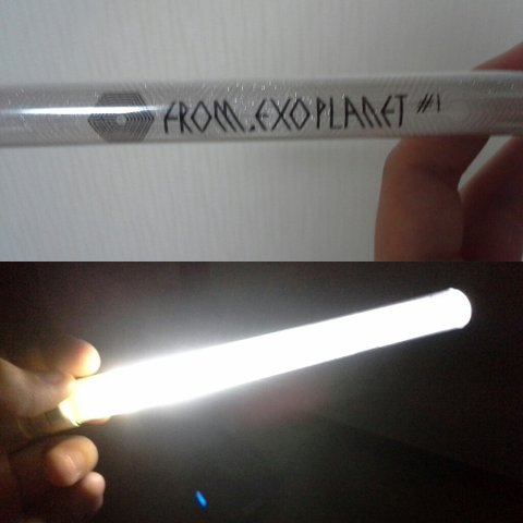 (콘서트 당시 사용된 엑소 응원봉입니다. 보시는 봐와 같이 '흰색'빛을 띄고 있습니다. 비스트 응원봉과 같이 비추었을때 한층 밝습니다. 염연히 누가봐도 색깔차이가 나죠.)