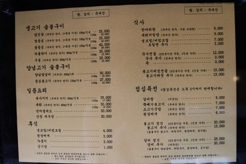 lg아트센터맛집 강남목장의 메뉴판이에요.