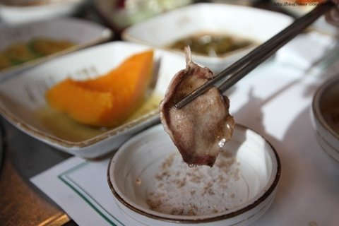 소금에 살짝 찍어서 먹으면 우설이 상당히 담백하구요..