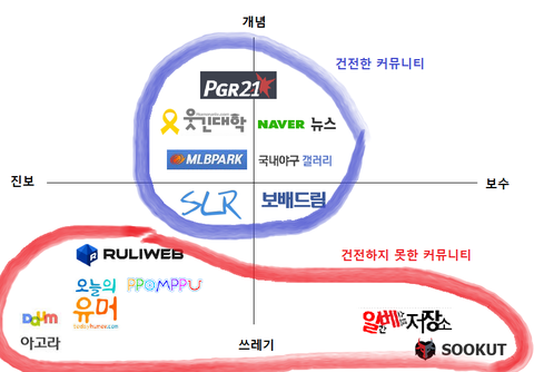 오유하고 아고라가 쓰레기라고? 일베가 만든것같은 느낌이 드네 하두 둘이 싸우니깐