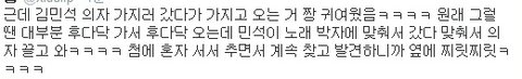 보니까 그 의자 가져온 타이밍이 멤버들이 한칸씩 옮겨야 하는 타이밍이니까 민석이 자리에 종대가 올 차례잖아. 그래서 딱 그 타이밍에 맞게 가져오더라고... 센스도 너무 멋지지만 그 타이밍에 배려까지 포함되어있다고 생각하니 더 멋있는 듯~