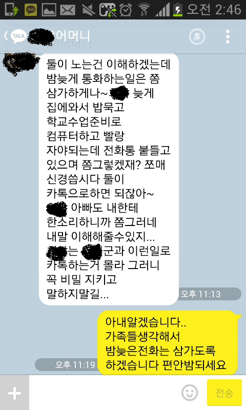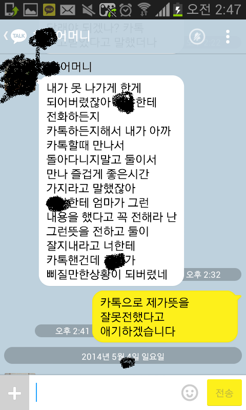 저는 불안한 마음에 .. 전화를 했습니다.. 아니나 다를 까 격양 된 목소리의 어머니는