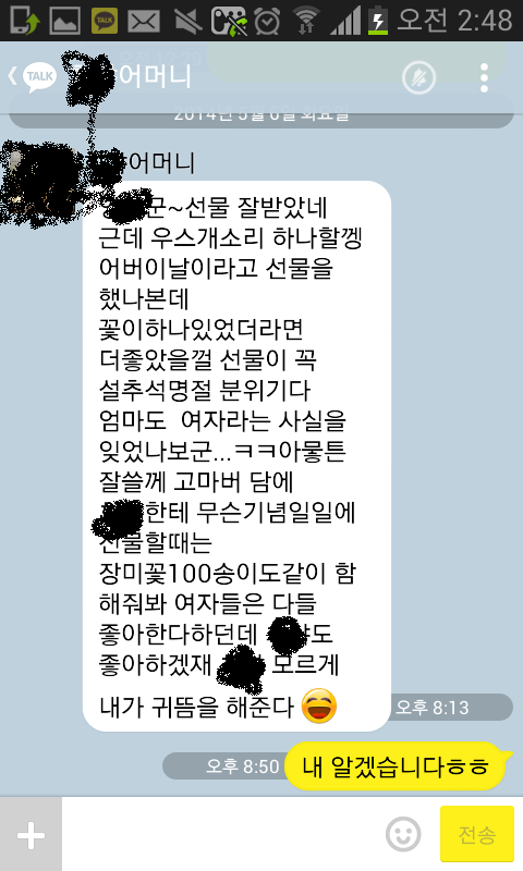 그리고 다음날, 어머니께 카톡이 왔습니다.