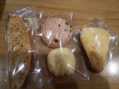 왼쪽부터 모카 비스코티, 딸기쿠키, 버터링 쿠키, 플레인 스콘 순이에요ㅋㅋㅋㅋ